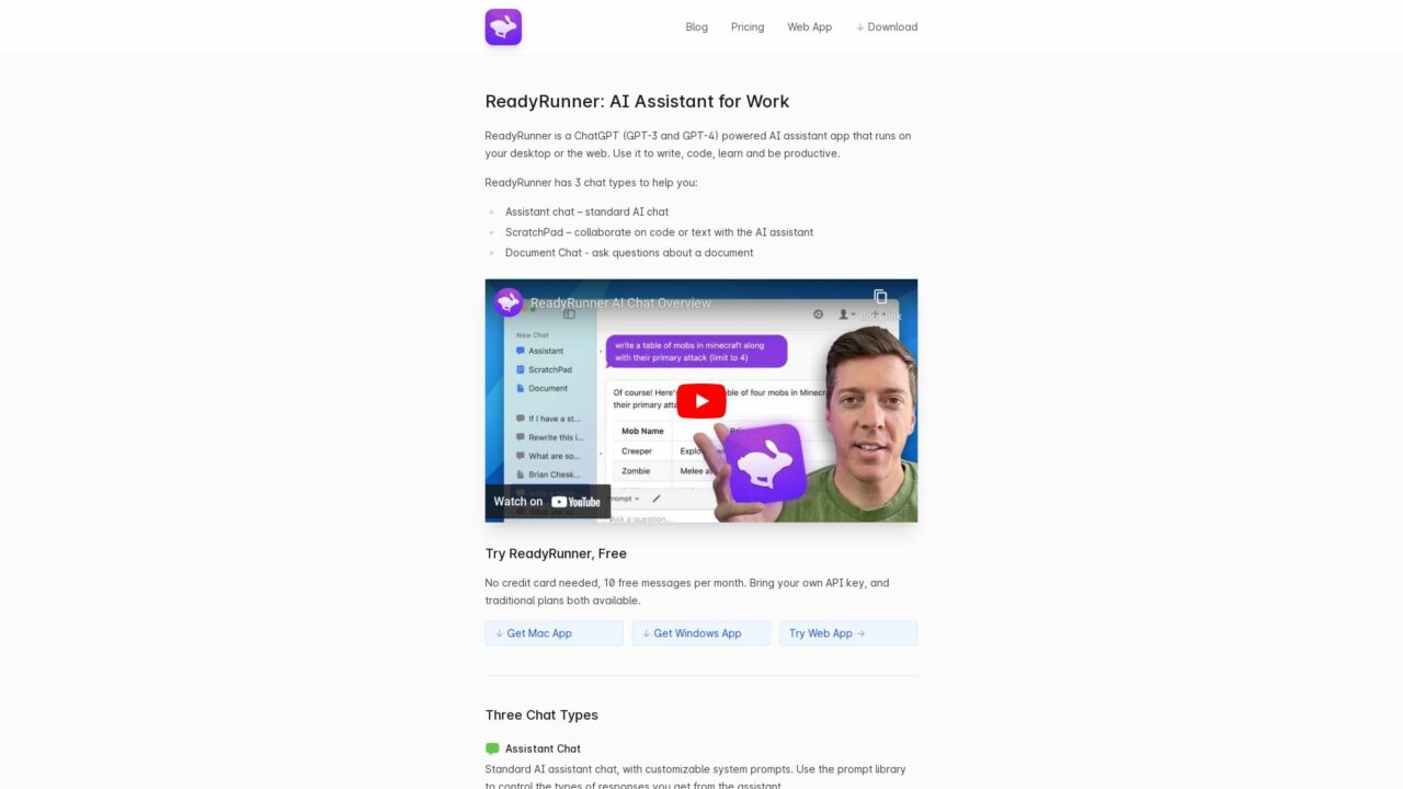 ReadyRunner stands out as a versatile AI assistant, catering to a wide range of professional needs with its robust features and user-friendly interface.